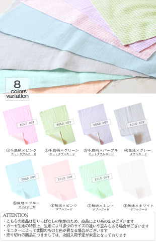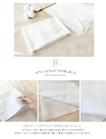 [-] 商品名 ダブルガーゼマスク手作りキット / 平タイプ( 5枚分 ) セット内容 ・2重ガーゼ生地(縦 23cm × 横 32cm)…5枚 ・ウーリスピンひも(長さ 4m) ・作り方レシピ ※作り方動画やレシピは大人用にて掲載しておりますがサイズ調整していただくと子供用としてもお作りいただけます 柄×色 ( 全8色展開 ) 千鳥柄×ピンク / 千鳥柄×グリーン / 千鳥柄×パープル無地×グレー / 無地×ブルー / 無地×ピンク / 無地×ミント / 無地×ホワイト 素材 生地 : 千鳥柄…綿100% ( ニットダブルガーゼ )無地…綿100% ( ダブルガーゼ )肌ざわりの柔らかい風合いのガーゼ生地ですひも : ナイロン100% ( ウーリスピンひも6mm幅 )ウーリスピンひもとは。