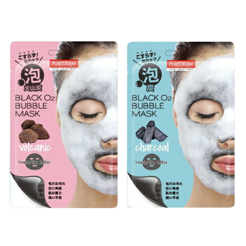 【ネコポス全国送料無料】【さらに選べるおまけ付き】【泡シートマスク】PUREDERM(ピュアダーム) ブラックO2(オーツー) バブルマスク(BLACK O2 BUBBLE MASK) 泡炭酸パック 20g(1回分) × 1枚(炭・火山灰より選択) - 柔らかな泡がたっぷり発生!【smtb-s】
